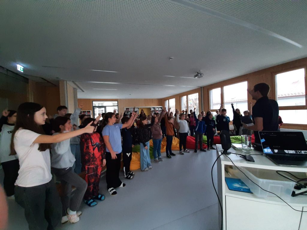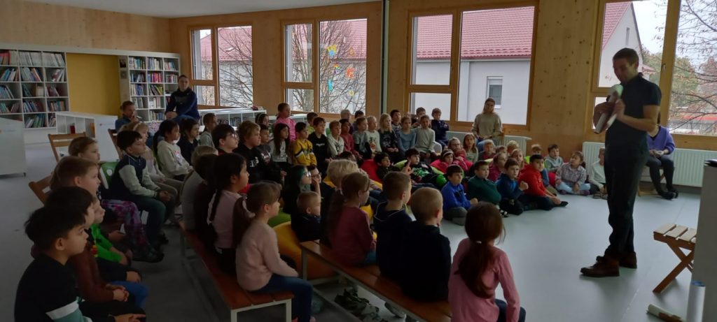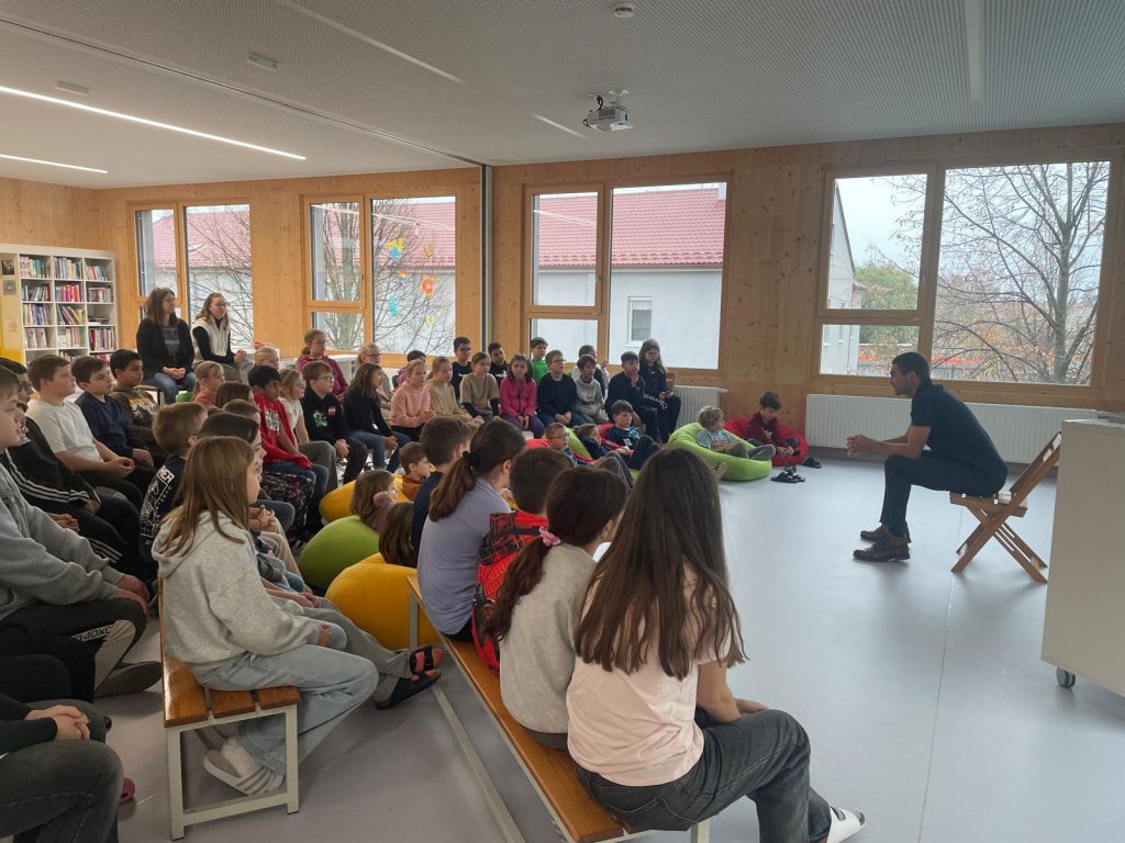Um die Lesemotivation bei unseren Schüler:innen aufrechtzuerhalten, haben wir den Kinder- und Jugendbuchautor Hannes Hörndler zu uns eingeladen. Die Kinder erlebten eine lustige, spannende und unterhaltsame Lesestunde, bei der sie zuhören, mitfiebern und mitraten konnten. Zum Abschluss beantwortete der Autor noch einige Fragen der Kinder und verteilte Autogrammkarten.