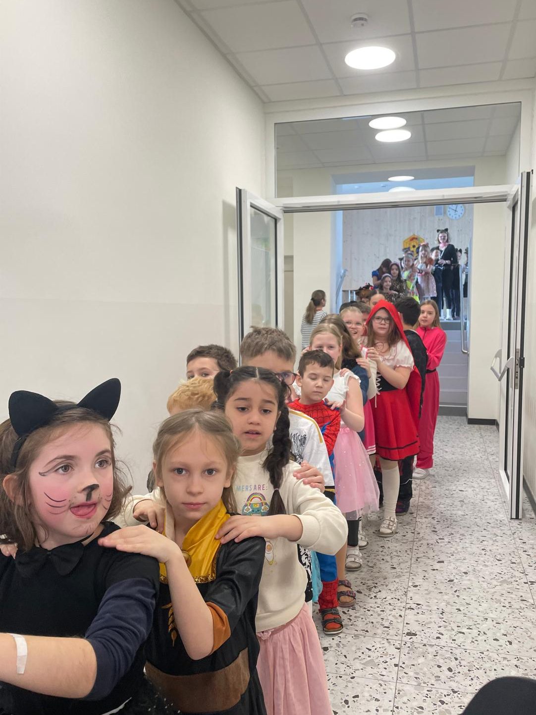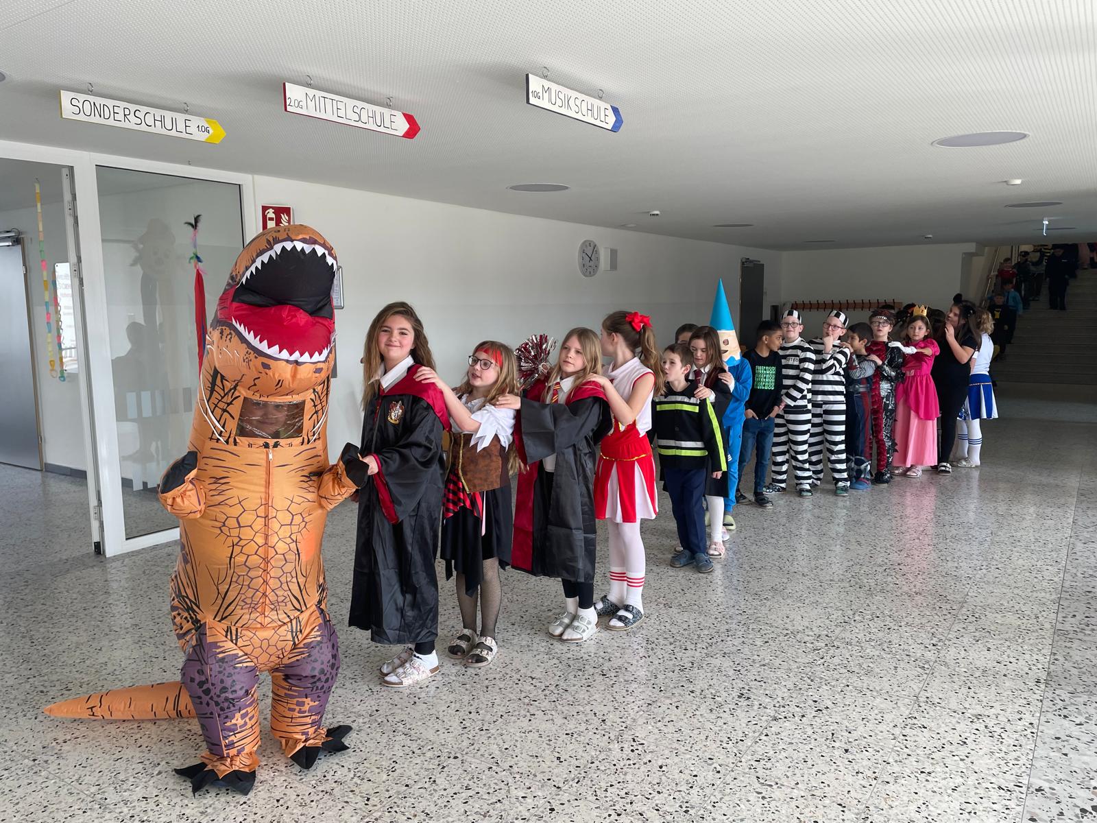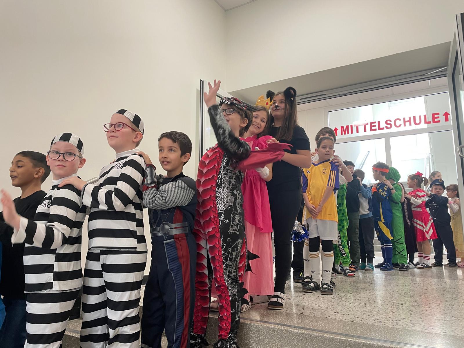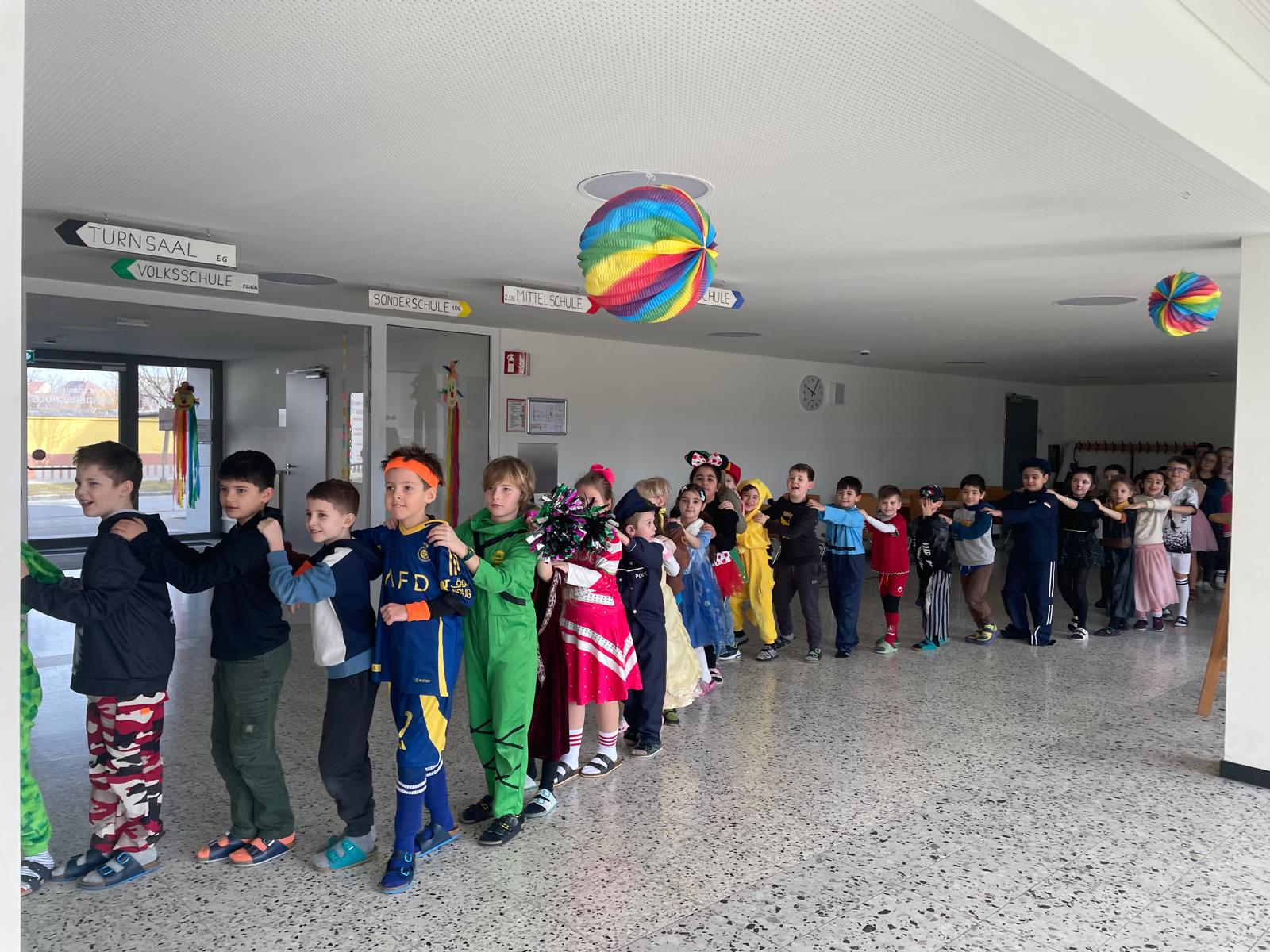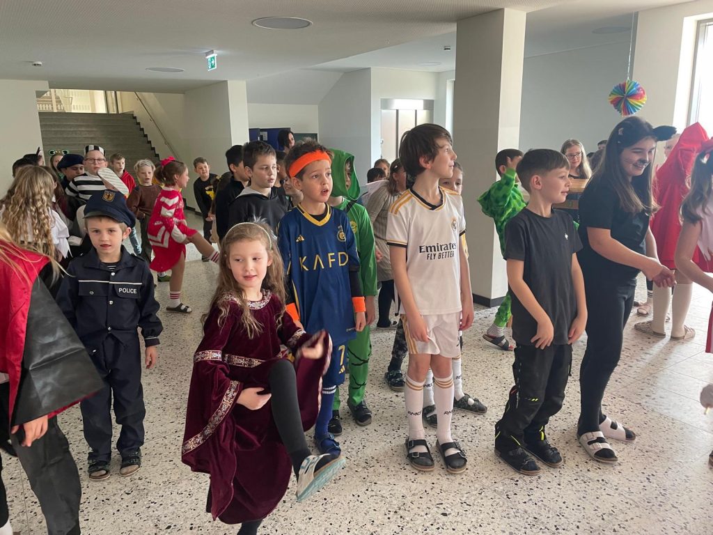 Am Faschingsdienstag verwandelte sich unsere Schule in ein buntes Meer aus fröhlichen Kostümen! Ein besonderes Highlight war die traditionelle Polonaise, bei der alle Klassen gemeinsam durch die Schule zogen. Mit Musik, viel Gelächter und Tanzschritten reihten sich die Kinder ein und hatten jede Menge Spaß.