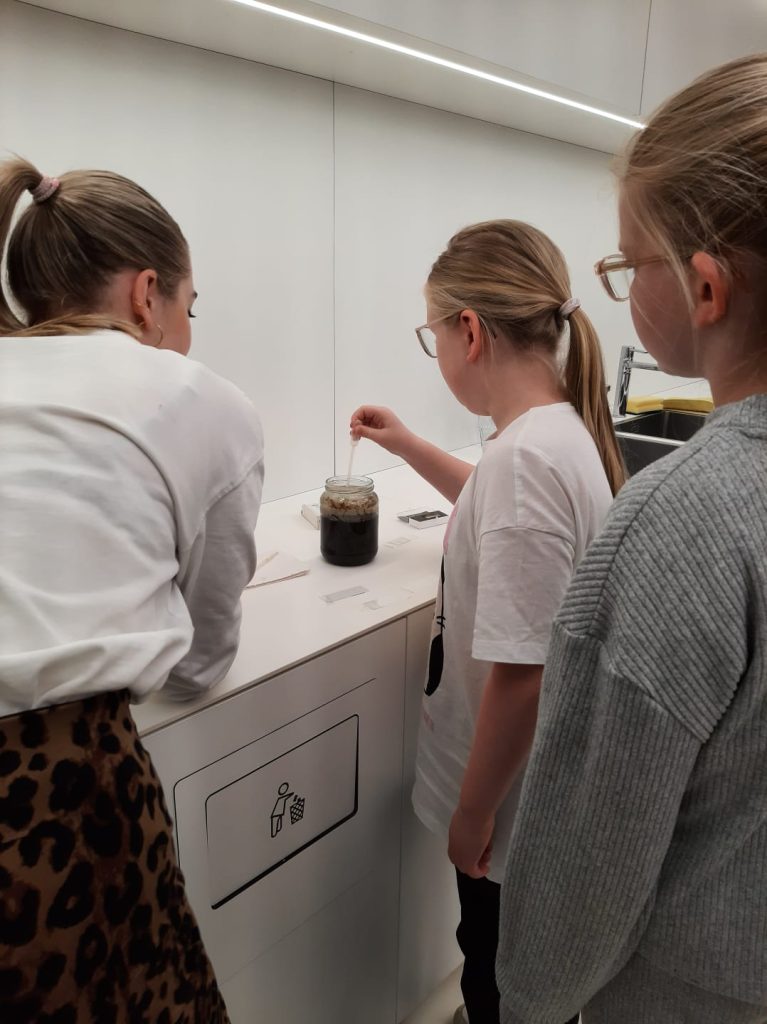 Am 26. Mai besuchte die 4. Klasse das Naturhistorische Museum in Wien. Die Schüler:innen wählten das Thema „Winzigkleines riesengroß“. Im ersten Teil des Workshops wurden verschiedene Kleinstlebewesen unter dem Mikroskop vergrößert auf einer großen Leinwand gezeigt. Im zweiten Teil arbeiteten die Kinder selbst mit Mikroskopen und malten wunderschöne Insektenbilder.