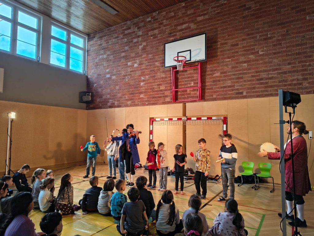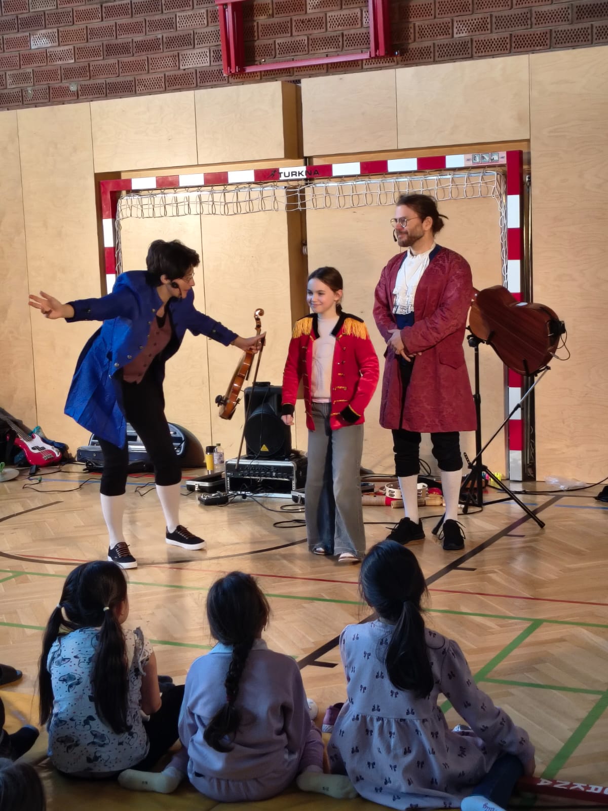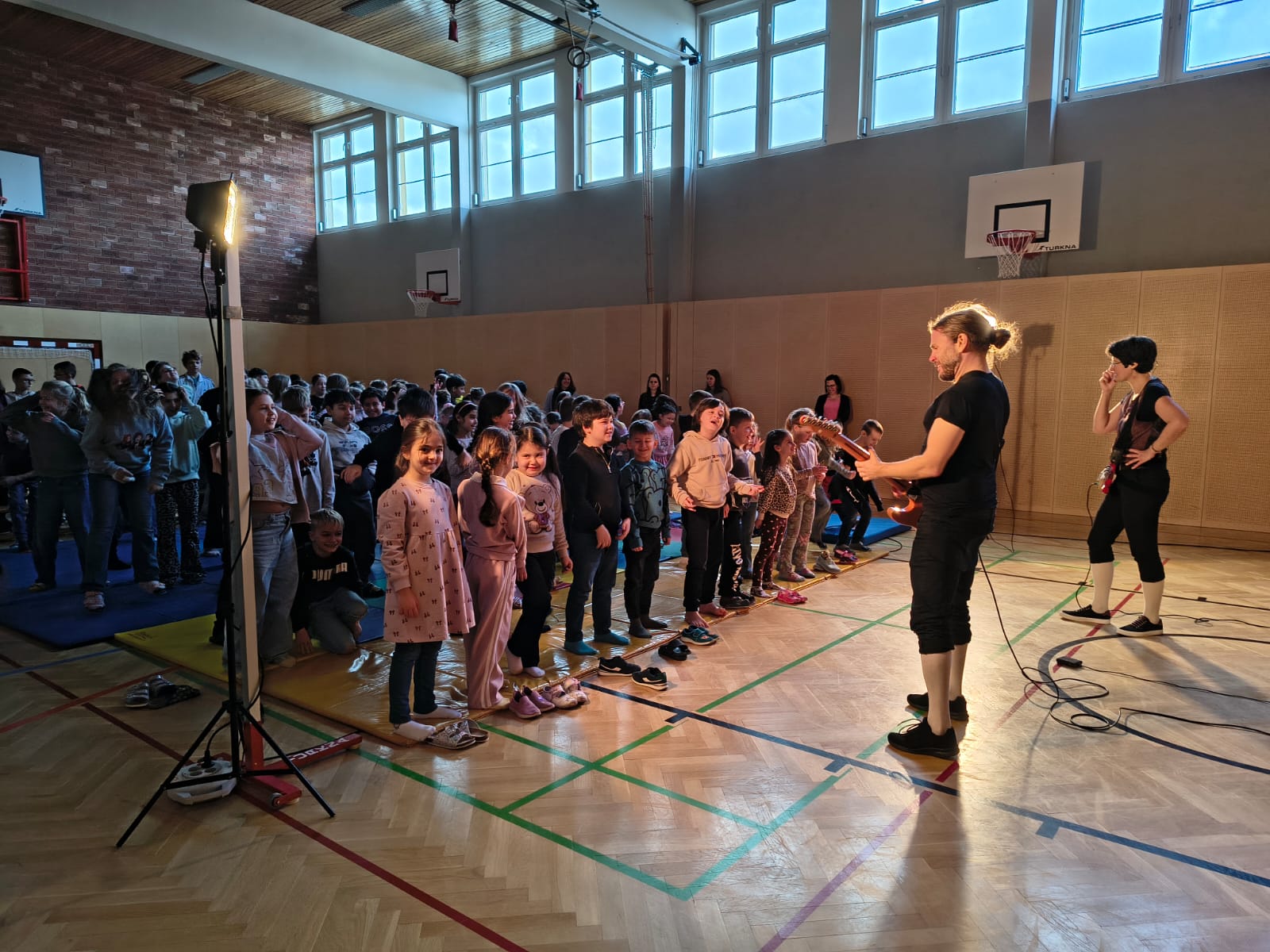Am Mittwoch, den 18.2., fand im Turnsaal der Volksschule das Mitmachkonzert von Rock4Kids zum Thema „Klassik trifft Spaß – Mozart & Haydn“ statt.