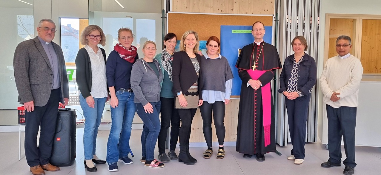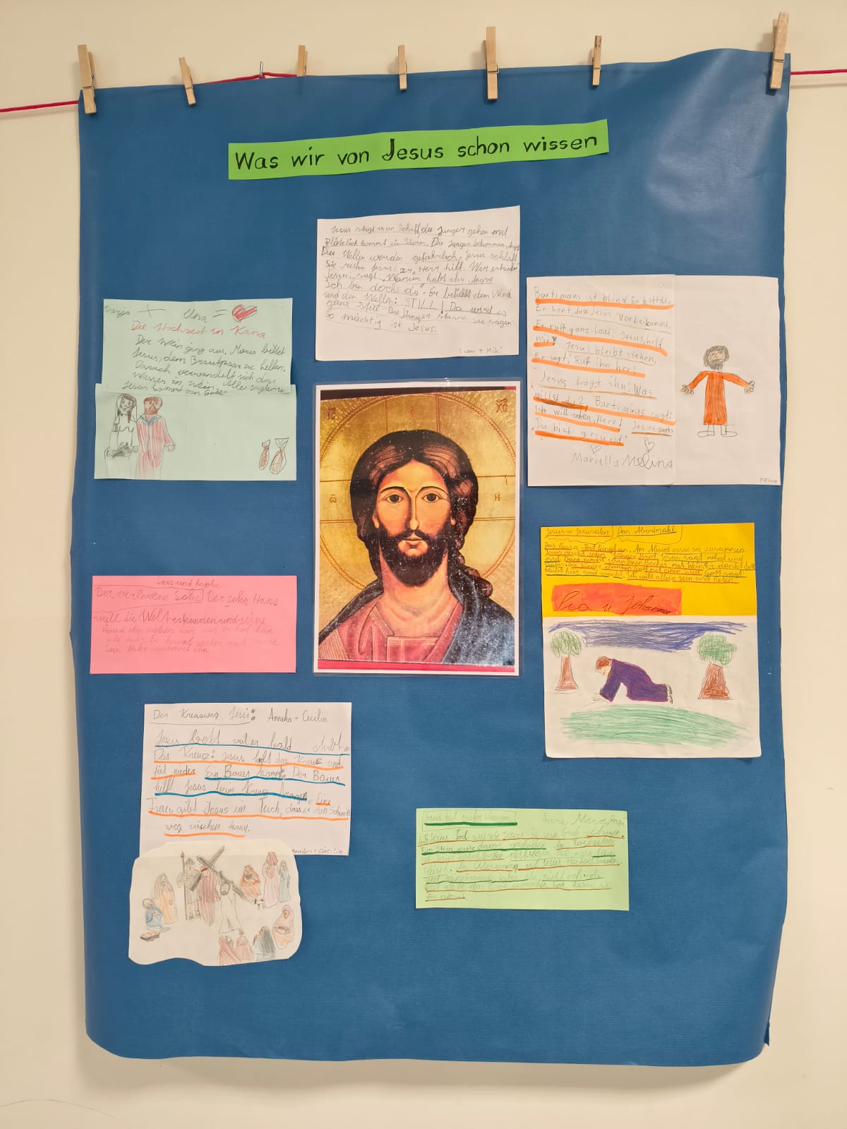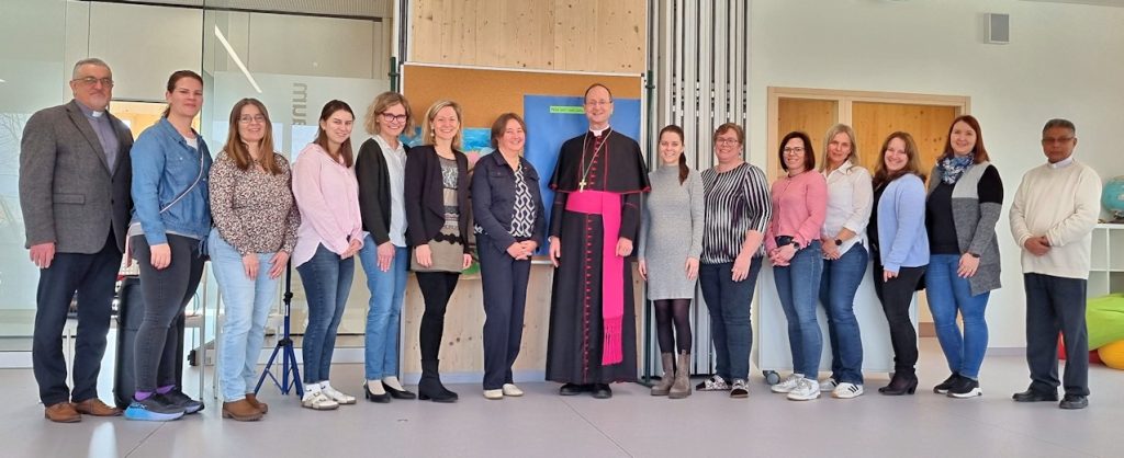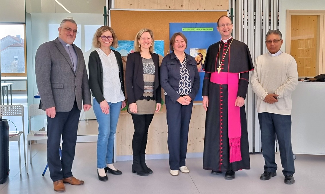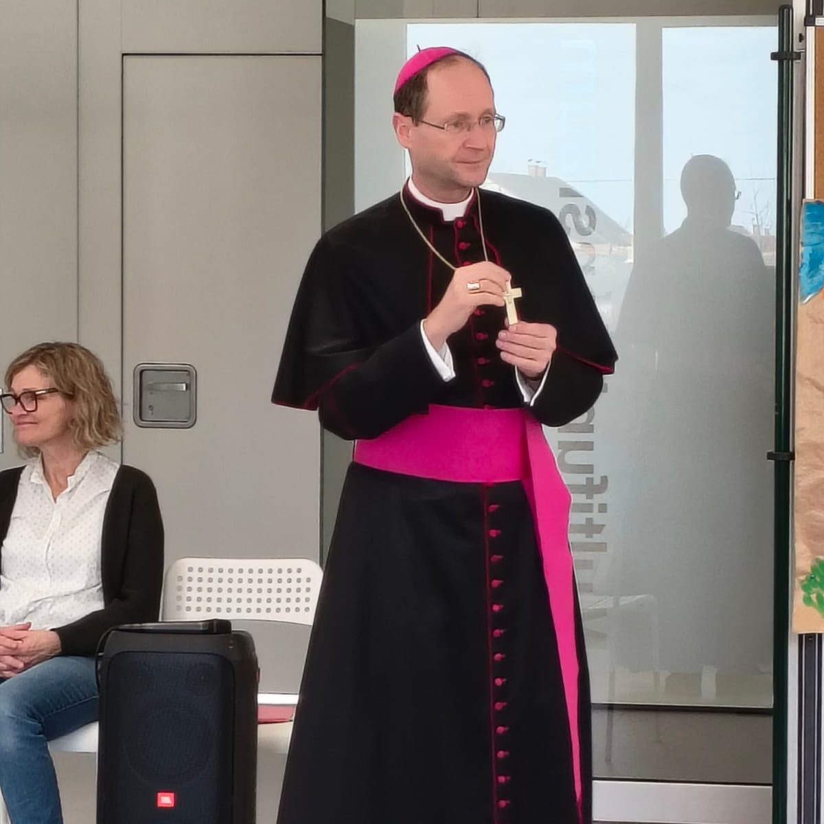 Am 25.2. besuchte Weihbischof Stephan Turnovszky unsere Schule. Die Schülerinnen und Schüler aller Klassen präsentierten im Rahmen dieser Bischofsvisitation unter der Leitung von Religionslehrerin Sabine Bartosch Rollenspiele und Plakate zu verschiedenen Themen aus dem Leben Jesu, mit denen sie sich vorher im Unterricht beschäftigt haben. Auch einige Lieder wurden gemeinsam gesungen. Bischof Turnovszky suchte danach das Gespräch mit den Kindern und zeigte ihnen auch seine Bischofsinsignien. Kinder, die ein anderes oder kein Religionsbekenntnis haben, konnten als Zuseher dabei sein.