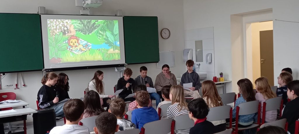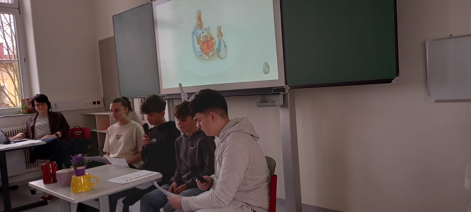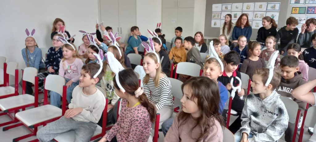 Am Tag danach wurde den dritten und vierten Klassen dann auch von den Schülern und Schülerinnen der Mittelschule vorgelesen, unter anderem eine Osterhasengeschichte auf Deutsch und auf Englisch.